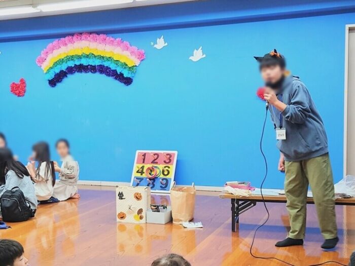 そして今回も中学生ボランティアが大活躍です。今回はハロウィンなので、頭に魔女の帽子や悪魔のツノをつけてもらいましたよ。
